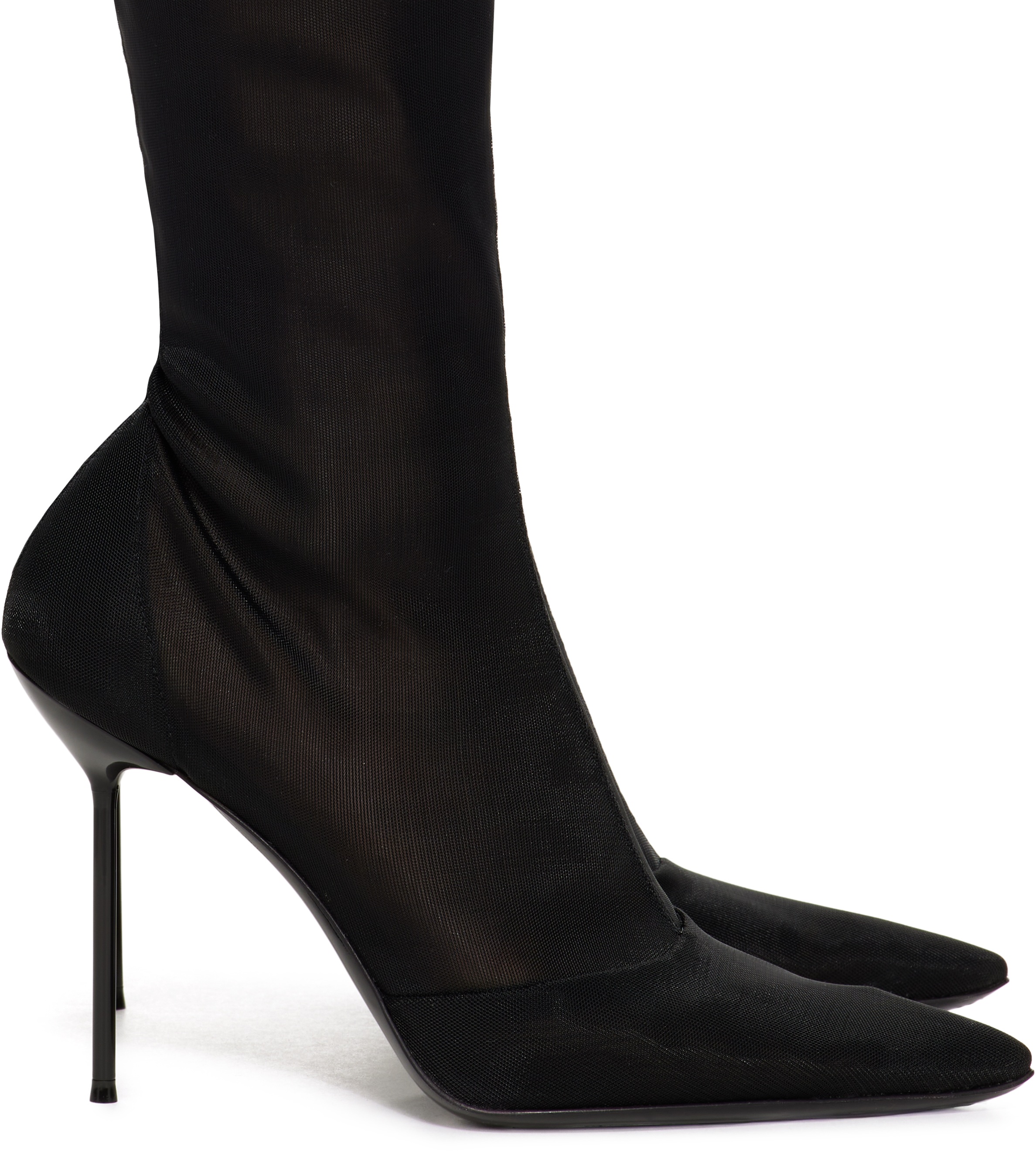 - ویژگی: بوتهایی با ساق کشدار یا ترکیبی از چرم و مواد الاستیک، ساق بالا تا زیر زانو یا بیشتر.