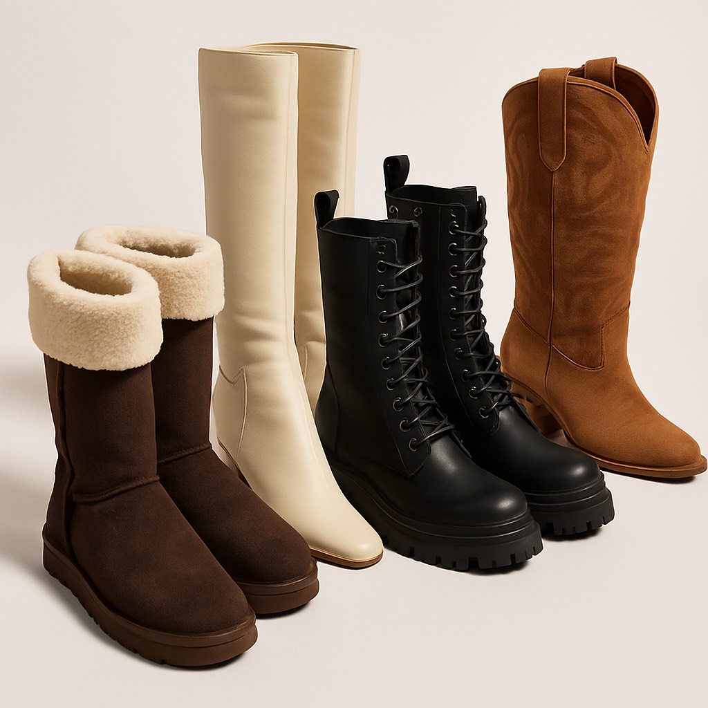 - برندها: UGG، Sorel، و برندهای لوکس مثل Moncler که بوتهای گرم و لوکس ارائه میدهند.